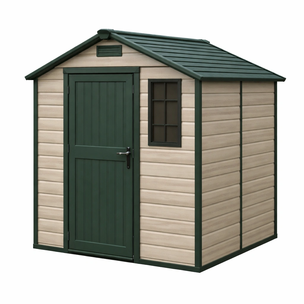 Cobertizo de jardín de resina beige verde con puerta y ventana 185x150x210 cm