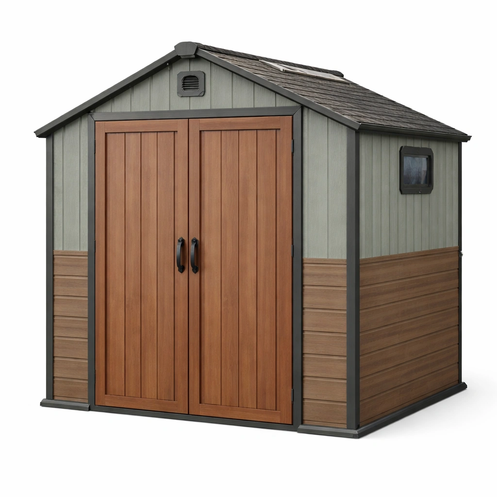 Esta caseta de almacenamiento está fabricada con resina de polipropileno de alta resistencia y estructura de acero galvanizado.